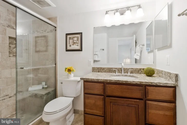 This updated all-brick end-unit townhouse feels like a detached home with hardwood floors, open floor plan, fireplace, built-ins and attached garage. The kitchen is light and bright with marble counters and a subway tile backsplash. There is a large breakfast area and a dining room that comfortably accommodates a table for six, while the Family Room is perfect for everyday enjoyment! The upper level features a roomy Owner’s Suite with ample closet space, ceiling fan and large windows. The ensuite Owner’s Bathroom has a glass shower with custom tiles. Two additional bedrooms, also with ceiling fans, neutral carpeting and generous closet space, share a full hallway bath with a tub/shower combo. And wait until you see the walkout lower level!! A large rec room you’ll LOVE with a white brick fireplace and an entire wall of built-in shelving. French doors lead out onto a freshly stained, spacious deck. The deck is fully fenced and backs to a pretty common area. The lower level has a half bath and a laundry area. The one-car garage includes another set of built-in shelving for extra storage. It is conveniently located near I-66, Route 123, and Vienna, and just steps from popular shops and restaurants — this home is a must-see!